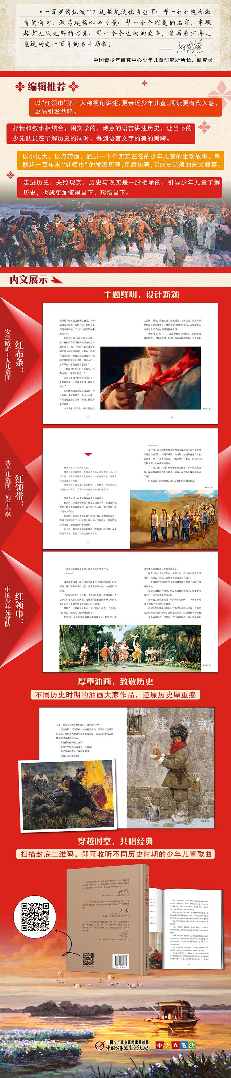 本書(shū)用散文詩一(yī)般的抒情語言,串聯起不同曆史階段的非虛構的少年英雄模範故事,不僅讓孩子們情不自禁地進入曆史情境之中(zhōng),同時,又(yòu)讓紅領巾的百年曆史渾然一(yī)體(tǐ),氣韻生(shēng)動流暢,故事生(shēng)動感人。同時,本書(shū)的裝幀設計主題鮮明,大(dà)氣莊重,用厚重的油畫作為插圖,更加增添了本書(shū)的曆史感。書(shū)中(zhōng)附設的二維碼,可以聽(tīng)到不同曆史時期的少年兒童歌曲。這樣立體(tǐ)的審美文本,讓小(xiǎo)讀者們在莊重而童趣的閱讀中(zhōng),學習少年英雄,繼承紅領巾的光榮傳統,是親子閱讀的好作品,也是開(kāi)展少先隊活動的好教材。